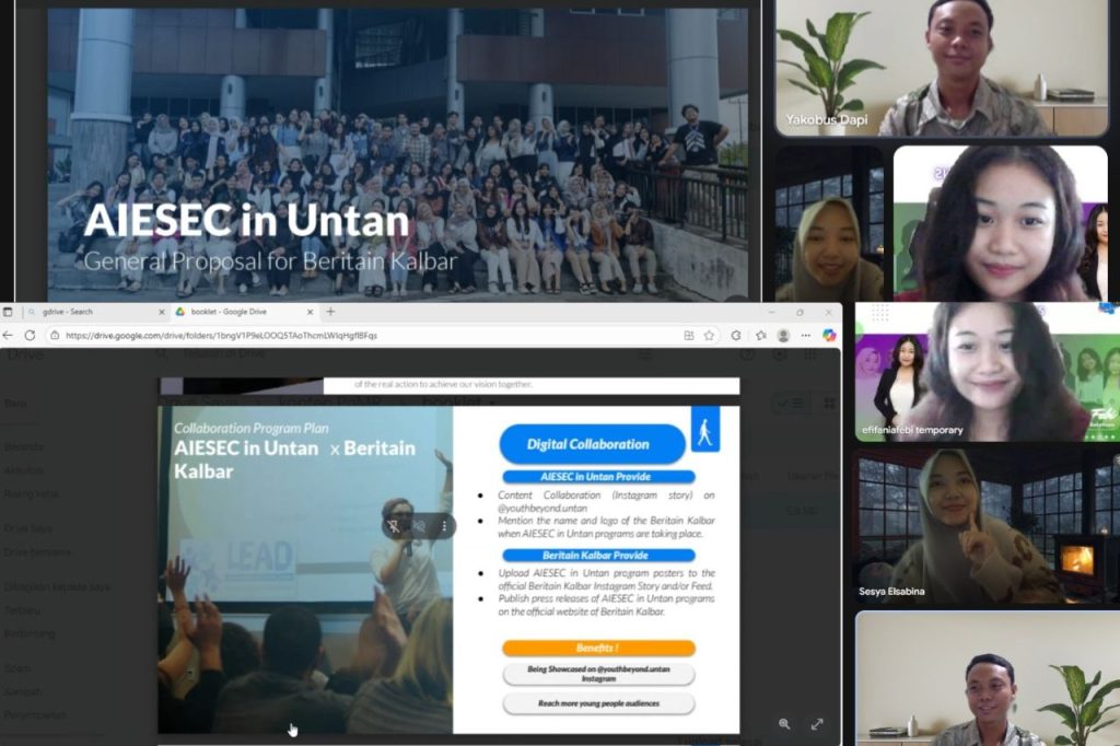 BERITAINKALBAR.COM, PONTIANAK – AIESEC in Untan menjalin kerja sama dengan Beritain Kalbar untuk memperkuat sosialisasi berbagai program kepemimpinan dan pengembangan pemuda di Kalimantan Barat. Kerja sama ini diawali setelah tercapai kesepakatan dalam pertemuan melalui Google Meet bersama Redaktur Beritain Kalbar, Yakobus Dapi, dengan perwakilan AIESEC in Untan, yakni Efi Fania Febi dan Sesya Elsabina selaku Staff of Public & Media Relations Division, pada Kamis (2/10/2025).