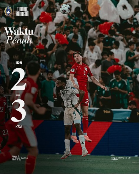 Foto: Round 4 Skor Pertandingan Indonesia (2)Vs Arab Saudi (3) (Instagram @timnasindonesia)